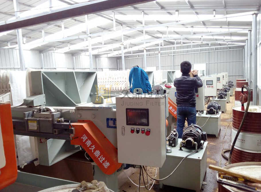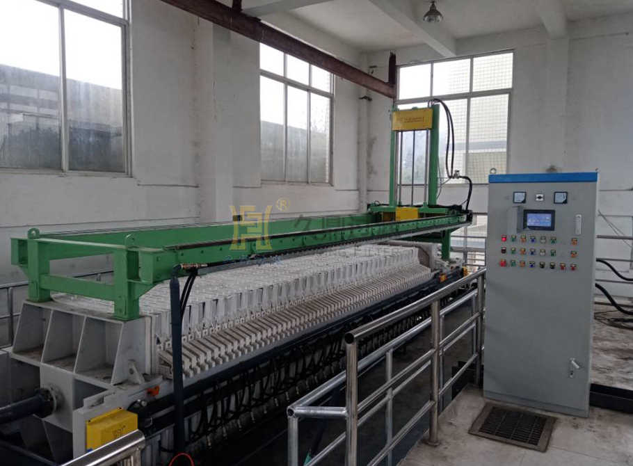 自動(dòng)拉板壓濾機(jī)采用PLC控制, 能對(duì)壓濾機(jī)進(jìn)行各項(xiàng)操作(如濾板壓緊、集液板合并和開啟、松開濾板、拉開濾板),并留有遠(yuǎn)程控制接口,能遠(yuǎn)程自動(dòng)操作控制。