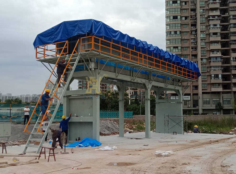 壓濾機配套設備 自動曲張系統(tǒng) 皮帶輸送機 自動翻板 自動儲泥斗